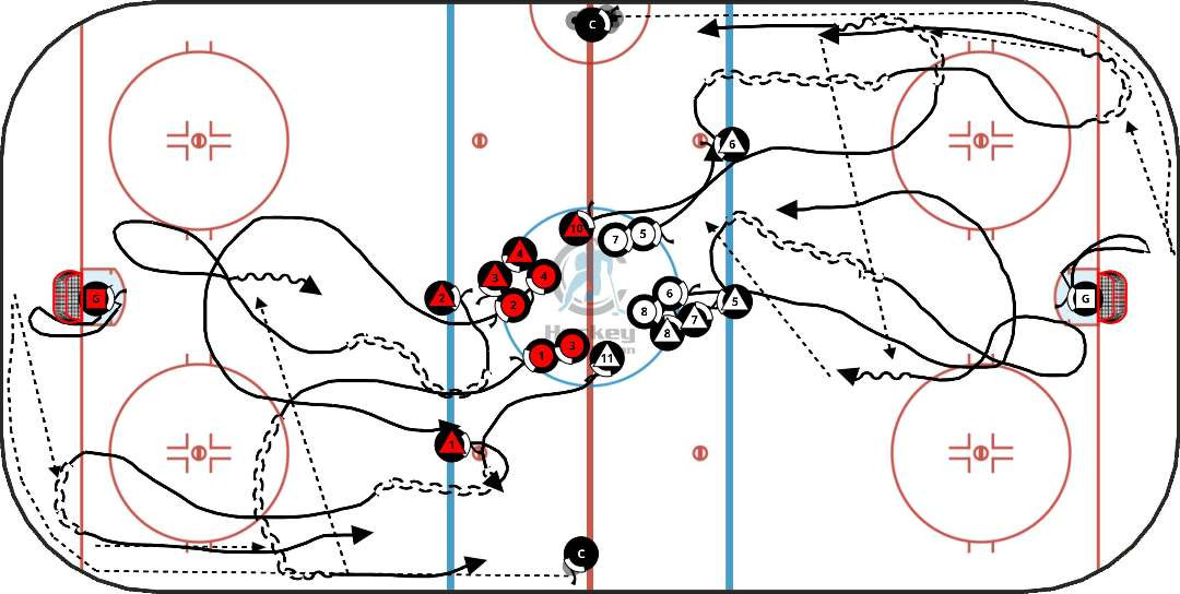 Center support the puck low and slow through the middle of the ice.