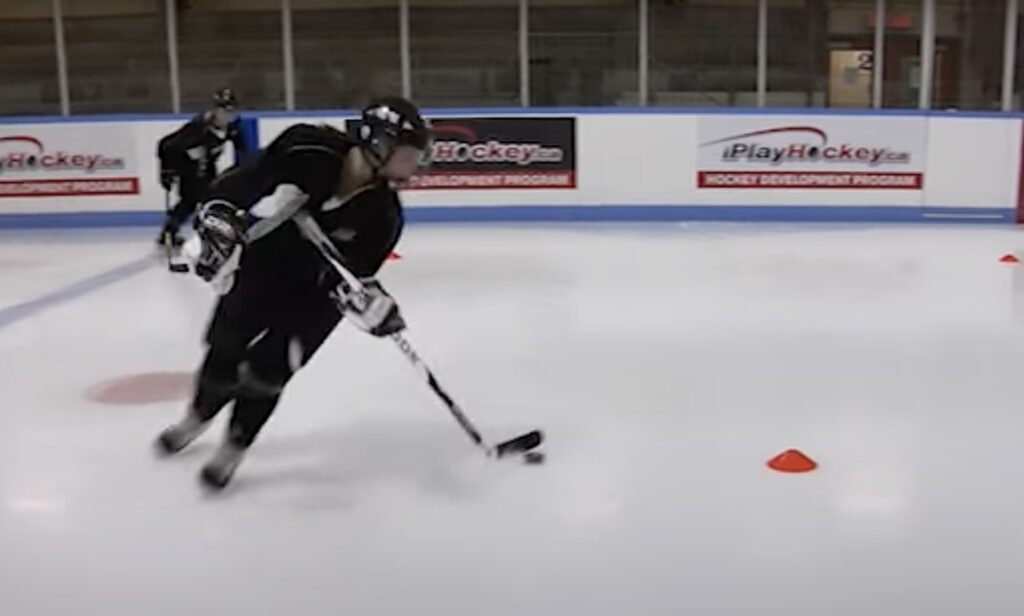 Instructor Mike Pilon teaches us the next progression in Underhandling the puck by using your bottom hand and keeping the puck ion your forehand. This drill educates players on how to control the puck while in motion creating difficulty by having your bottom hand do all of the work.
