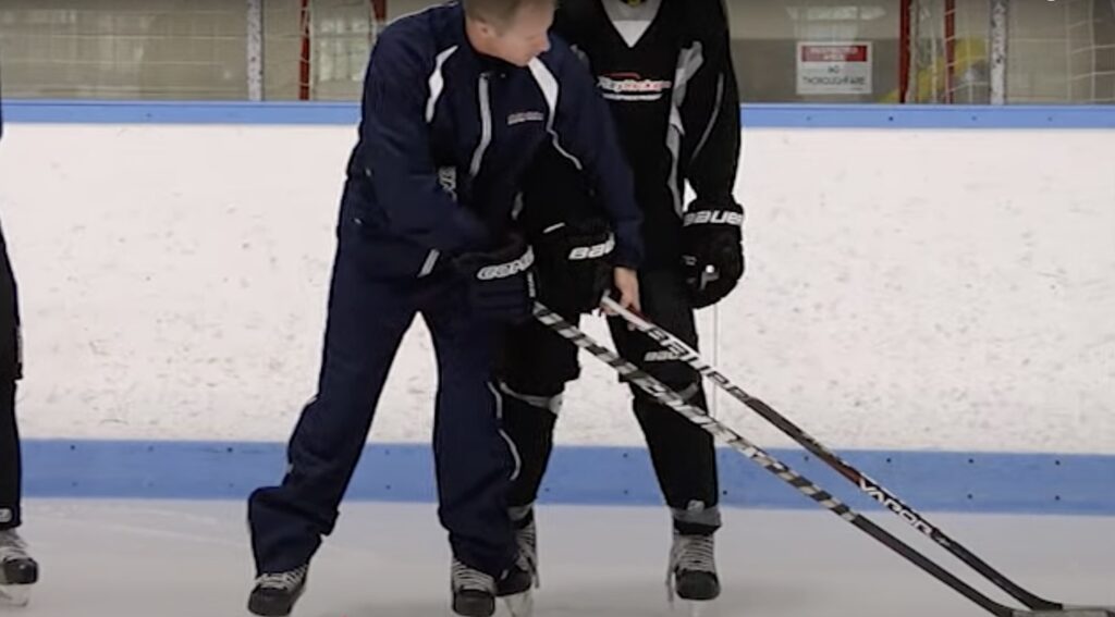 Instructor Mike Pilon teaches us how to underhandle the puck so that players keep the puck on their forehand while in the offensive zone allowing players to become a threat to shoot or pass the puck.