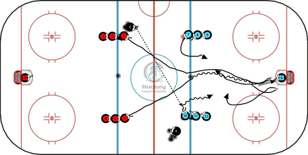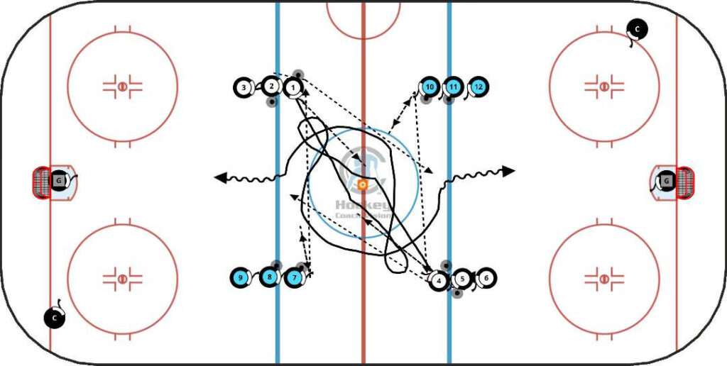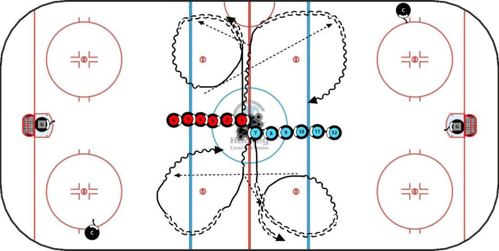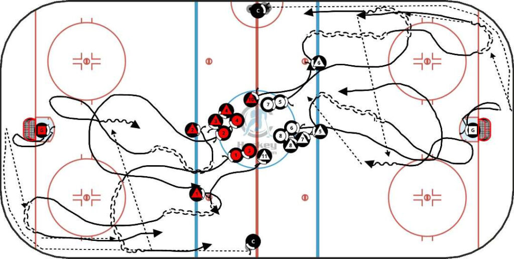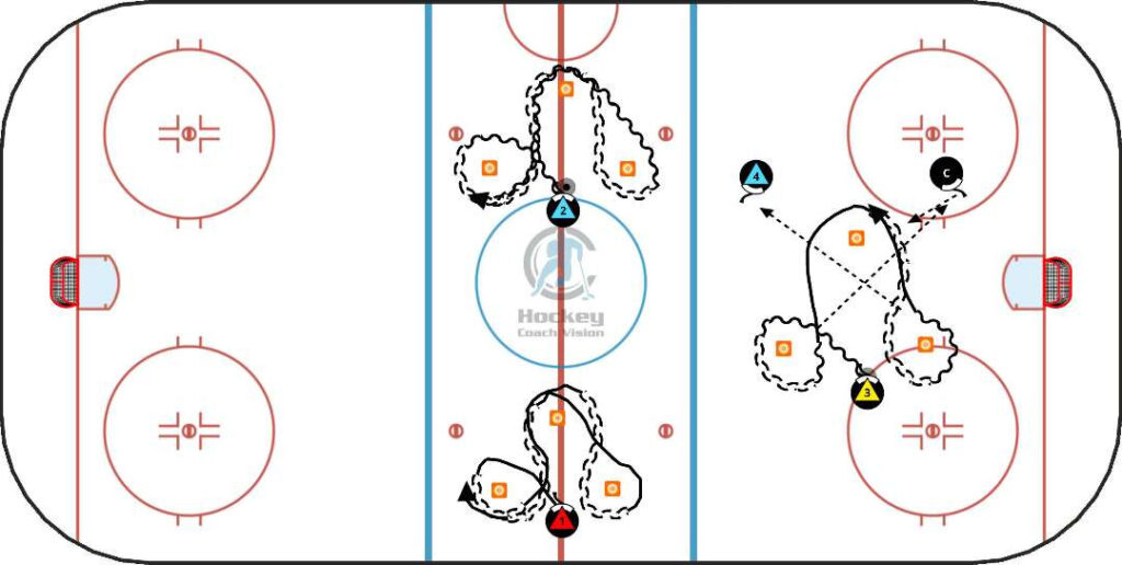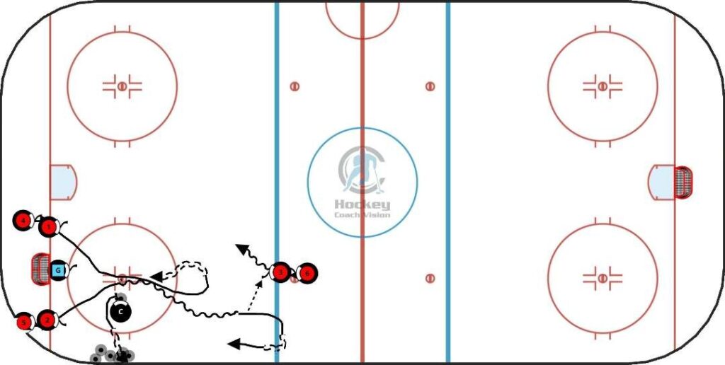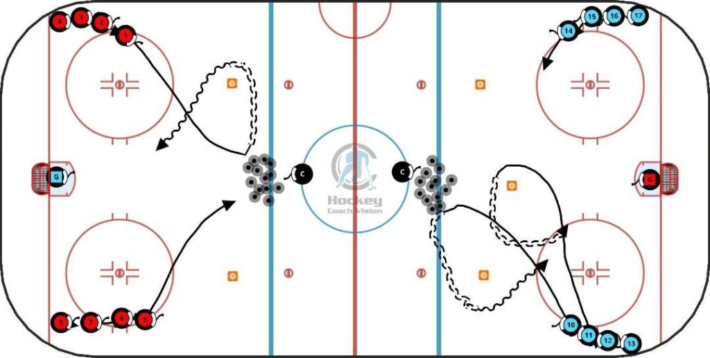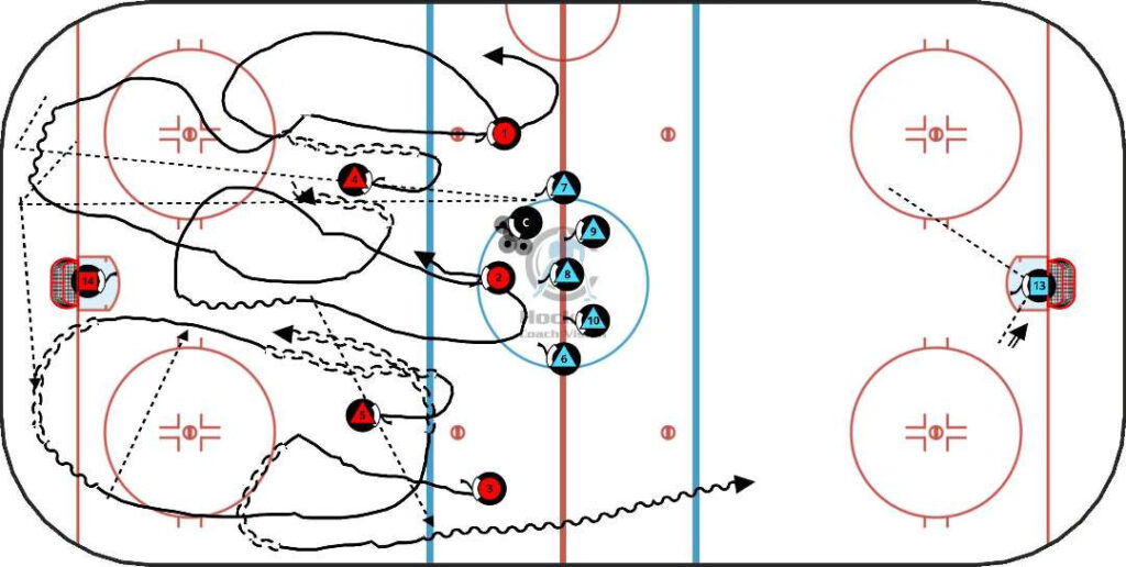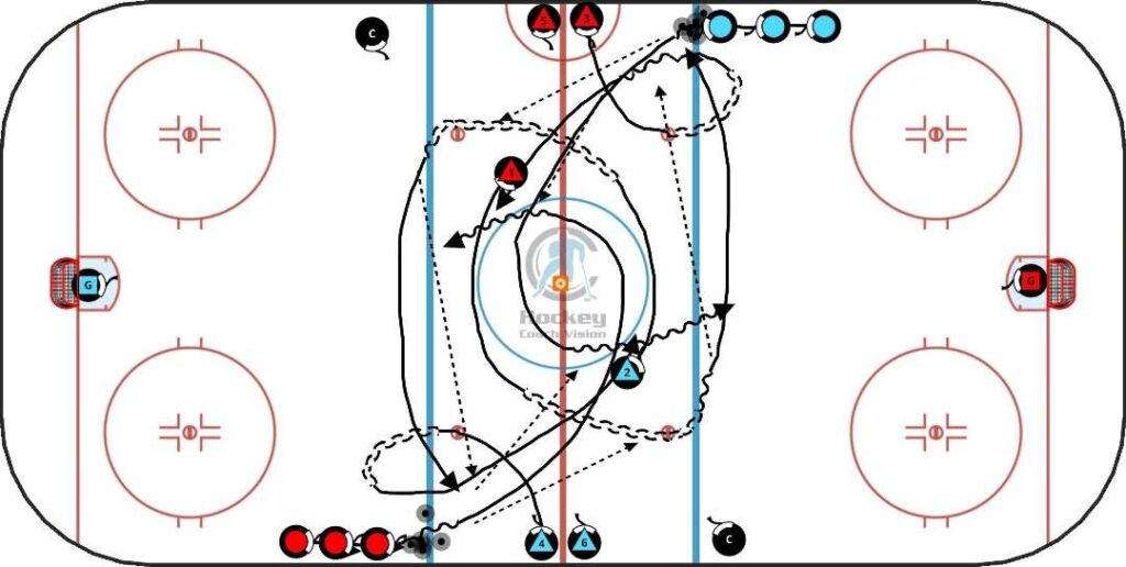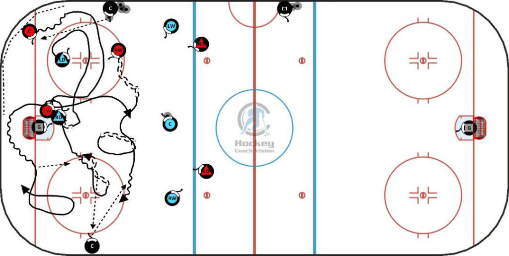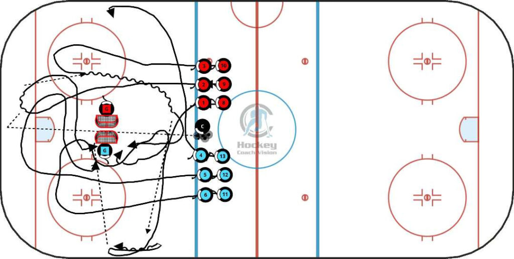 2 on 2 battle drill to work on net-front presence and defending down in front of the net.